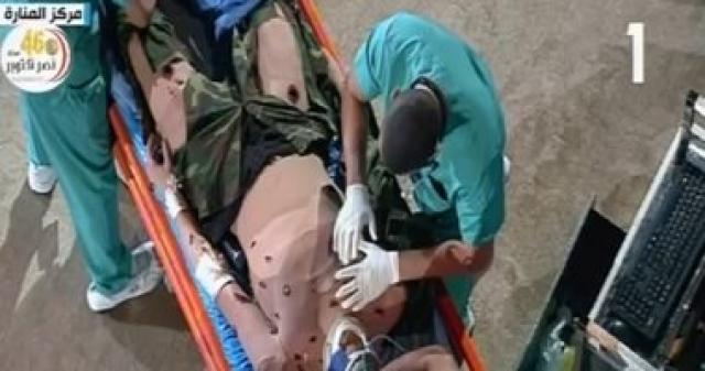 استعرض بعض خريجى كلية طب القوات المسلحة، بعض المهارات الطبية باستخدام نماذج من المحاكيات الطبية، أمام الرئيس عبدالفتاح السيسي، وذلك خلال حفل تخرج الدفعة الأولى "طب القوات المسلحة"، دفعة المشير محمد عبد الغنى الجمسي.