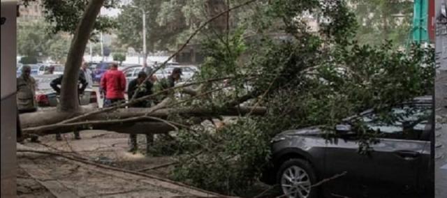 سقوط شجرة بسبب سوء الأحوال الجوية أمام قصر ثقافة المنصورة