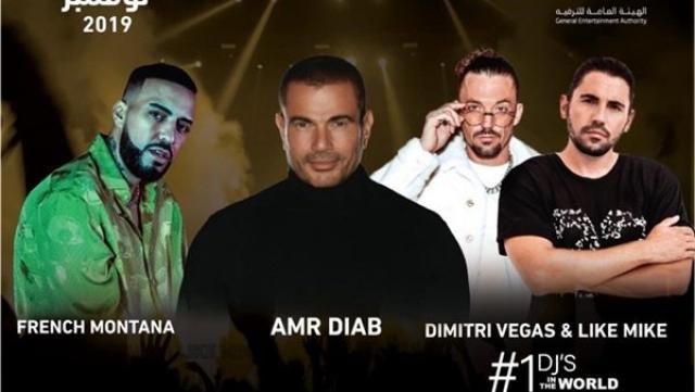يحيي النجم الكبير عمرو دياب حفلا يوم الخميس 7 نوفمبر، ضمن فاعليات موسم الرياض الذي تنظمه الهيئة العامة للترفيه بالمملكة العربية السعودية.