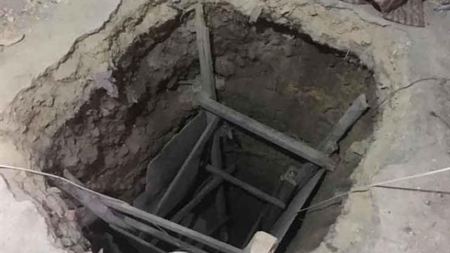وانتقل مأمور وضباط المركز وتم ضبطه المتهم وبصحبته 5 آخرين ويقيمون بذات الناحية وتبين وجود حفرة دائرية الشكل بقطر 3 أمتار وبعمق 8 أمتار، وتم ضبط أدوات الحفر المستخدمة.