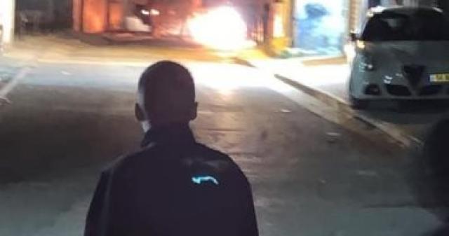 محتجون يلقون زجاجات مولوتوف على مدرعة اسرائيلية خلال عبورها ببلدة العيساوية