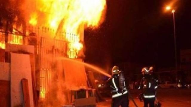 ندب المعمل الجنائي لمعرفة سبب حريق مصنع للنسيج في العبور