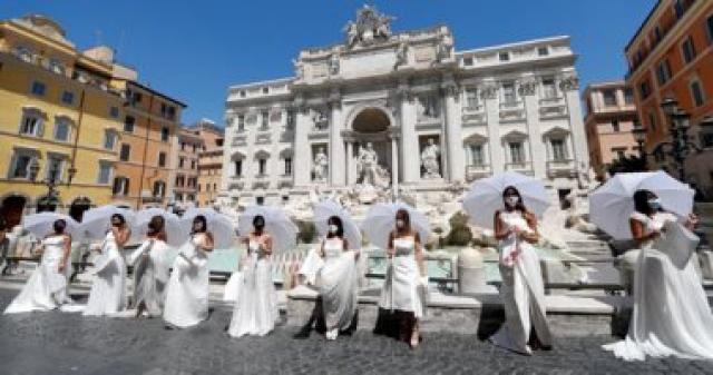 عرائس يتظاهرن فى روما احتجاجا على تأجيل حفلات الزفاف بسبب كورونا.. صور