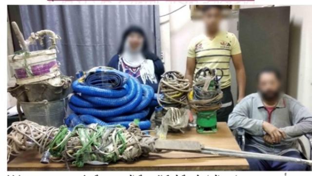 عقب تقنين الإجراءات أمكن ضبطه وبصحبته (زوجته "ربة منزل" مقيمة بذات العنوان ، وطالب " نجل شقيقتها ") حال قيامهم بالتنقيب عن الآثار داخل الغرفة المُشار إليها بالمدرسة محل عمله ، وعثر بداخلها على (حفرة قطرها 1 متر بعمق 10 أمتار - أدوات حفر وتنقيب) .