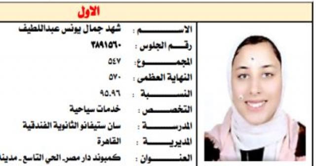 عبرت الطالبة شهد جمال يونس عبد اللطيف، من أوائل المدارس الثانوية للشئون الفندقية والخدمات السياحية، نظام ثلاث سنوات، عن سعادتها بتفوقها وكونها من الأوائل، مشيرا إلى أنها ستدخل كلية التجارة وستواصل تفوقها.
