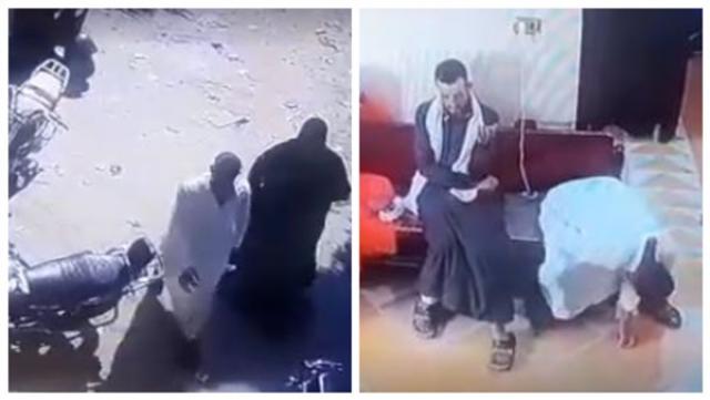 نزل الشاب من التوكتوك في كامل عافيته، مرتديًا عباءة بيضاء، ومصطحبًا زوجته إلى الطبيب، يظهر المقطع كيف سبق الشاب زوجته على السلم ودخل قبلها بلحظات إلى العيادة، واتخذ مقعده وسط المرضى.