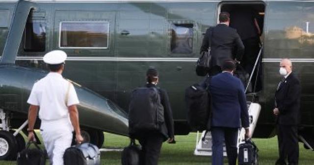 ”الحقيبة النووية” ترافق ترامب فى أول ظهور أثناء انتقاله للحجر.. فيديو وصور