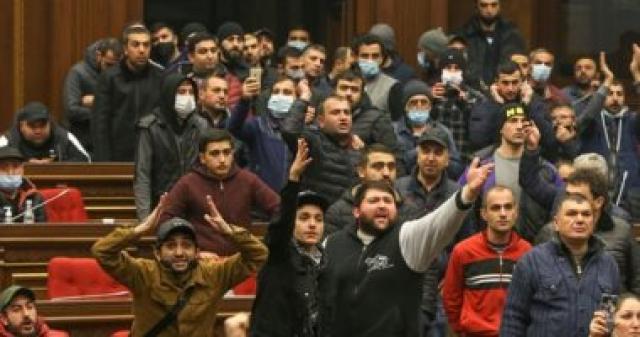 متظاهرون يقتحمون برلمان أرمينيا بعد توقيع اتفاق وقف إطلاق النار مع أذربيجان.. صور