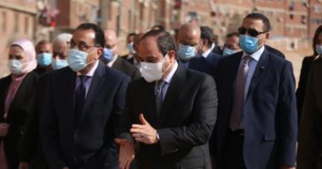 وتفقد الرئيس عبد الفتاح السيسى منطقة عزبة الهجانة لبحث اعمال التطوير مع وزراء الحكومة.