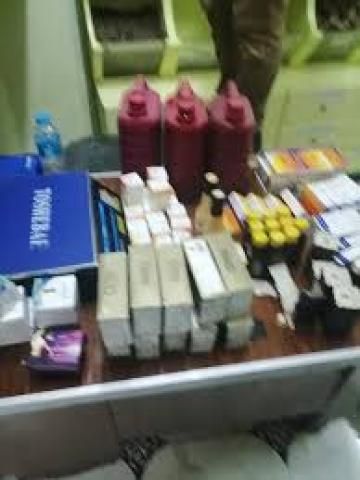 وضبط أدوية مهربة ومجهولة المصدر وغير مسجلة بوزاره الصحه والسكان.باحدي الصيدليات