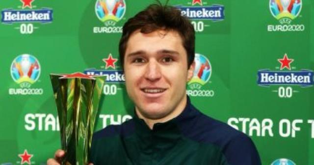 حصد فيديريكو كييزا نجم المنتخب الإيطالي جائزة أفضل لاعب في مباراة منتخب بلاده ضد إسبانيا والتي حسم خلالها منتخب الآزوري تأهله لنهائى يورو 2020، بعدما حقق فوزا صعبا نظيره بركلات الترجيح 4-2 عقب انتهاء الوقتين الأصلى والإضافى بالتعادل الإيجابى بهدف لكل منهما ضمن منافسات الدور نصف النهائى لبطولة كأس الأمم الأوروبية "يورو 2020" المقامة حاليا وتستمر حتى 11 يوليو الجارى.