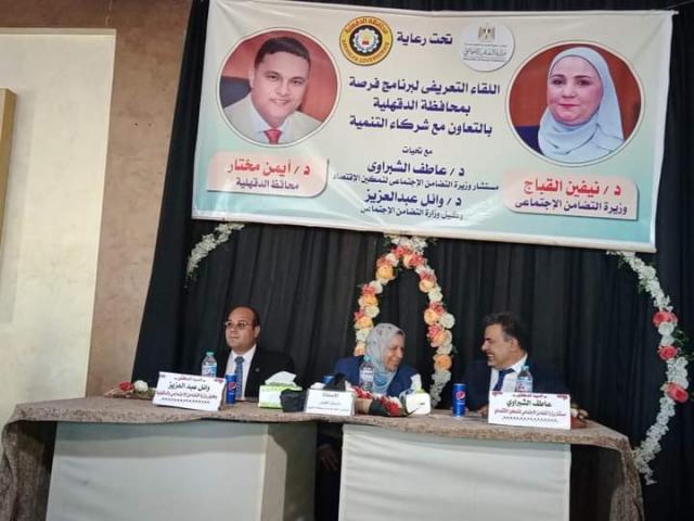 عقد بمحافظة الدقهلية، اللقاء التعريفى الأول لبرنامج فرصه بمحافظه الدقهليه تحت رعايه الدكتور أيمن مختار محافظ الدقهليه وحضور منال الغندور السكرتير العام المساعد لمحافظة الدقهليه والدكتور عاطف الشبراوى مستشار الوزيره للتمكين الاقتصادى والدكتور وائل عبد العزيز وكيل وزاره التضامن الاجتماعى بالدقهلية