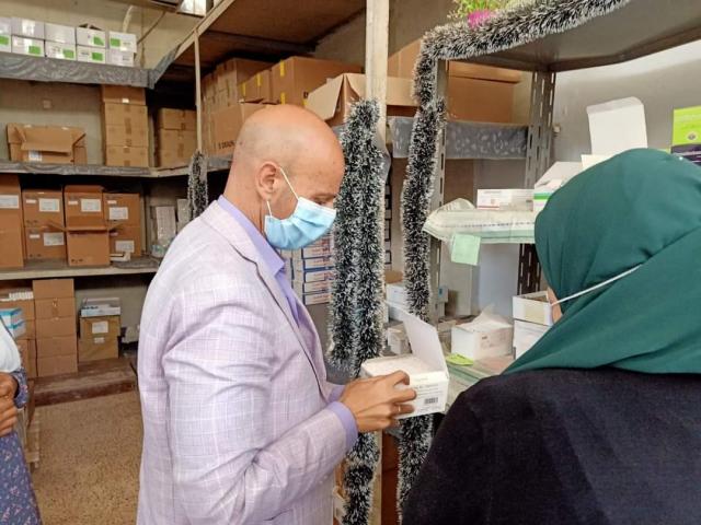 تفقد وكيل الوزارة مخازن المستلزمات الطبية والوقائية، ومخزن أدوية الأزمات والكوارث، والإستعمال العام، والأشربة، والأقراص، والمحاليل، والخيوط، والسرنجات، والأمبولات، وتنظيم الأسرة، والمخزن الرئيسي، وتم التأكد من توافر الأصناف المختلفة للأدوية والمستلزمات الطبية، والتأكد من عدم وجود أي أصناف راكدة، ووجه بتوزيع الأدوية والمستلزمات الطبية والوقائية علي جميع منافذ تقديم الخدمة الطبية بالكميات اللازمة، وفقاً لخطة العمل ومؤشرات الأداء ونسب التردد عليها، ومتابعة توفير الكمياتم اللازمة من الأدوية والمستلزمات الطبية من وزارة الصحة قبل إنتهاء الكميات بوقت كاف.