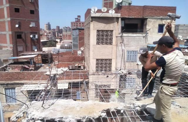 وأضافت في بيان صادر اليوم، إنه جرى إزالة حوائط بالطابق الأول علوي بدون ترخيص، بمشاركة سكرتير عام الحي، وإدارتي المشروعات، والتنظيم والمتابعة الميدانية بالحي.