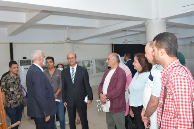 نائب رئيس جامعة أسيوط يصطحب لجنة التحكيم في جولة داخل معارض مشاريع طلاب قسم العمارة