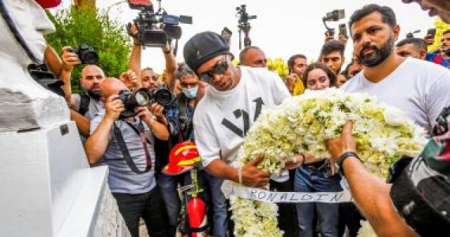 رونالدينيو يضع الزهور على النصب التذكارى لضحايا مرفأ بيروت فى لبنان