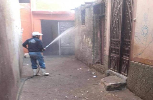 وقال محمد عبد الله القائم بأعمال رئيس الحي، قامت إدارة التطهير بالحي قامت اليوم، بتعقيم وتطهير شوارع منطقة مساكن مبارك، في إطار حملات التطهير والتعقيم لمنع "فيروس كورونا".