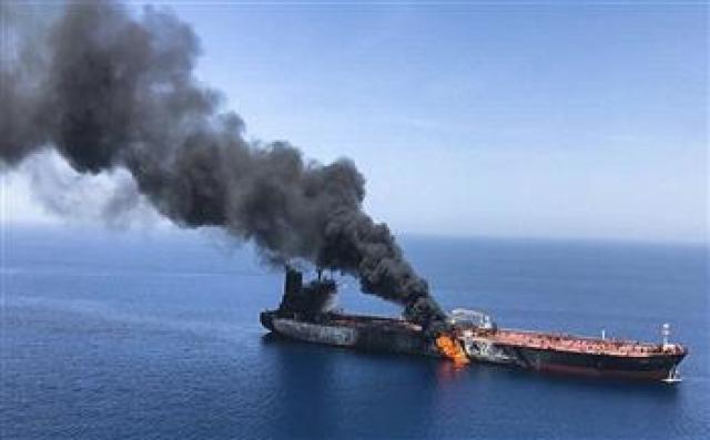 اصطدام سفينة بلغم بحري وفقدان السيطرة على سفينتين في خليج عمان والشكوك حول إيران