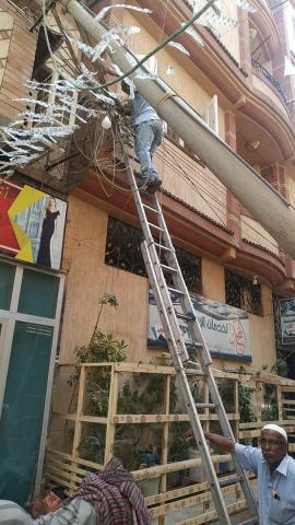 الزرقانى يتابع رفع عامود اناره سقط على احد المنازل بمدينة منوف