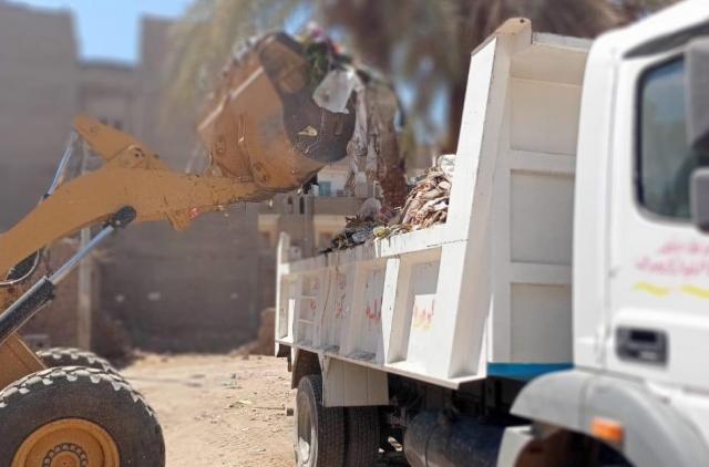 رفع ١٤ طن من الأتربة والمخلفات بقرية كومير في الأقصر
