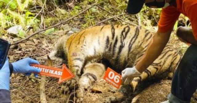 العثور على 3 نمور مهددة بالانقراض قُتلت بعد وقوعها فى أفخاخ صيد بأندونيسيا