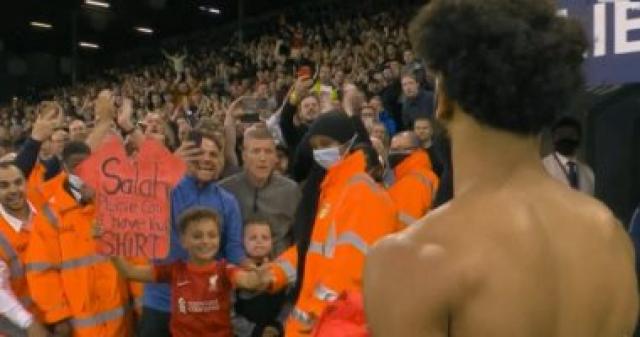 وقام محمد صلاح بإعطاء قميصه لطفل صغير من مشجعى ليفربول، قد رفع لافتة يطلب الحصول على قميص النجم المصرى، ليلبى الفرعون المصرى طلب الطفل الصغير عقب نهاية المباراة، وسط فرحة كبيرة من جانب الطفل.