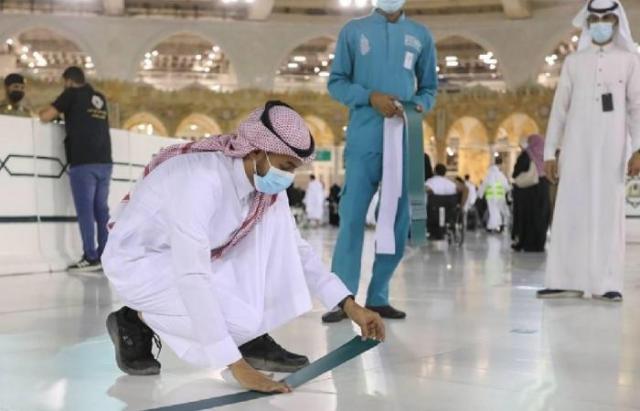 وأوضح وكيل إدارة الإرشاد المكاني المهندس معن قاروت, أنه جرى ترتيب ملصقات التباعد الجسدي بما يتناسب مع معايير أعداد الزوار بالمسجد الحرام لمواكبة الاستعدادات لهذا العام 1443هـ, البالغ عددها (25) مسارا بصحن المطاف، وتخصيص مسارات للأشخاص ذوي الإعاقة وفق ضوابط الإجراءات الاحترازية، وملصقات مصليات ركعتي سنة الطواف، ومصليات توسعة الملك فهد.