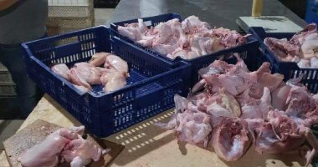 وعثر بداخل الثلاجة على (785 كيلو جرام دهون وكبدة "منتهية الصلاحية وبدون بيانات"- 848 كيلو لحوم مجمدة "بدون بيانات" جميعها مجهولة المصدر وغير مصحوبة بأية مستندات تدل على مصدرها).