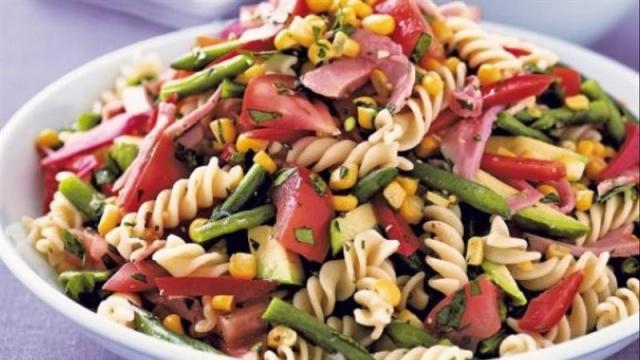 - فى وعاء عميق نضع الباستا والملح والفلفل والزيت وتقلب.