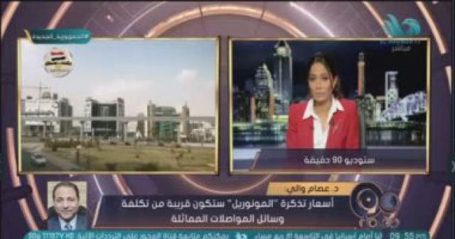وقال خلال مداخلة هاتفية مع الإعلامية بسمة وهبة، ببرنامجها "90 دقيقة" المذاع على شاشة "المحور"، إن حمولة المونوريل تتراوح من 15 ألف راكب فى الساعة لكل اتجاه إلى 45 ألف راكب فى الساعة لكل اتجاه، ويتم إدارته بصورة إلكترونية، ومعامل الأمان نسبته 100%، وسرعته تصل لـ90 كيلو متر فى الساعة.