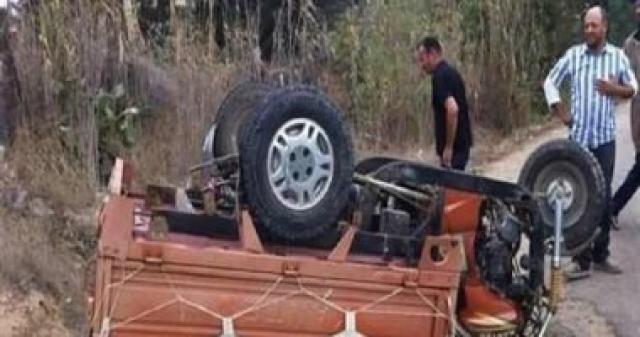 إصابة 3 أشخاص بإصابات متفرقة لانقلاب تروسيكل على طريق قلين