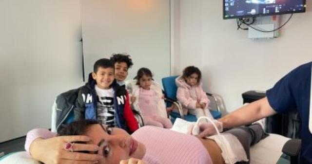 وظهرت رودريجيز في الصورة التي نشرتها وهي تستلقي داخل غرفة في أحد المستشفيات، بينما يجلس بجوارها أطفالها، ويقوم الطبيب بإجراء السونار ليظهر التوأم في الشاشة أمامهم، ليتعرف الأطفال على شقيقيهما الجديدين.