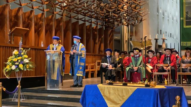 احتفاء كبير وحضور أكاديمي رفيع المستوى ميزا الاحتفال الضخم، الذي شهده مقر جامعة كوفنتري البريطانية أمس الثلاثاء، وتسلم خلاله الدكتور سالم بن محمد المالك، المدير العام لمنظمة العالم الإسلامي للتربية والعلوم والثقافة (إيسيسكو)، شهادة الدكتوراه الفخرية في الآداب، التي منحتها له الجامعة العريقة، تقديرا لجهوده في مجالات التربية والثقافة وبناء السلم وترسيخ قيم التعايش.