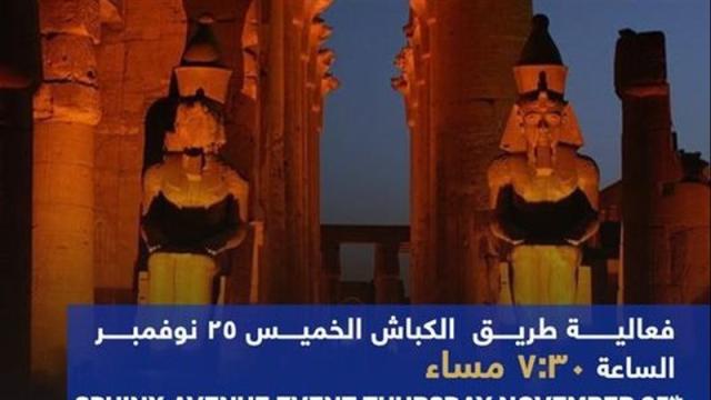 أعلنت وزارة السياحة والآثار، عن موعد افتتاح طريق الكباش بالأقصر يوم ٢٥ نوفمبر الجاري.فعالية طريق الكباش الخميس ٢٥ نوفمبر الساعة ٧:٣٠ مساءً