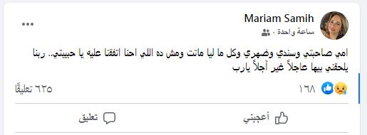 وطالبت مريم منذ ساعات متابعيها بالدعاء لوالدتها، حيث قالت فى منشور سابق لها: “لو بتحبوها ادعولها.. مفيش في ايدينا غير كده دلوقتي.. ابوس ايديكم متنسوهاش من دعواتكم”.