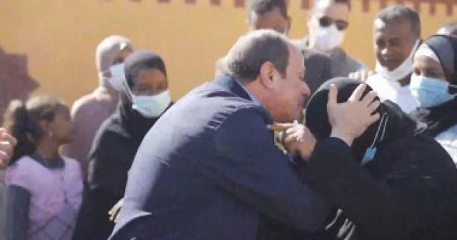 جابر الخواطر.. قبلة من الرئيس السيسى على رأس أحد المتضررين من السيول فى أسوان