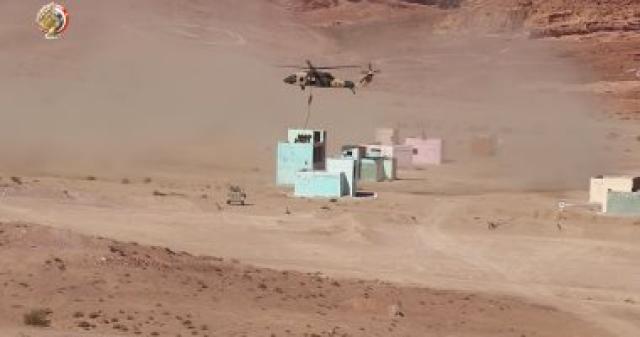 شاهد.. تنفيذ عملية مشتركة للقضاء على بؤرة إرهابية مسلحة ضمن تدريب ”العقبة 6”