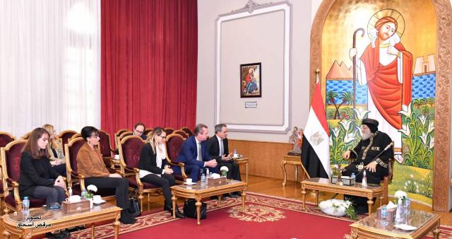 البابا تواضروس خلال لقاؤه وفد من البرلمان الأوروبي