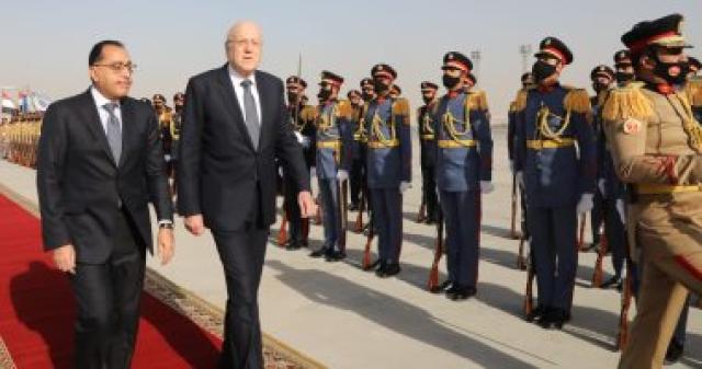 استقبل الدكتور مصطفى مدبولي، رئيس مجلس الوزراء، صباح اليوم، بمطار القاهرة الدولي، نجيب ميقاتي، رئيس الحكومة اللبنانية؛ حيث أجريت مراسم الاستقبال الرسمية لـ"ميقاتى".