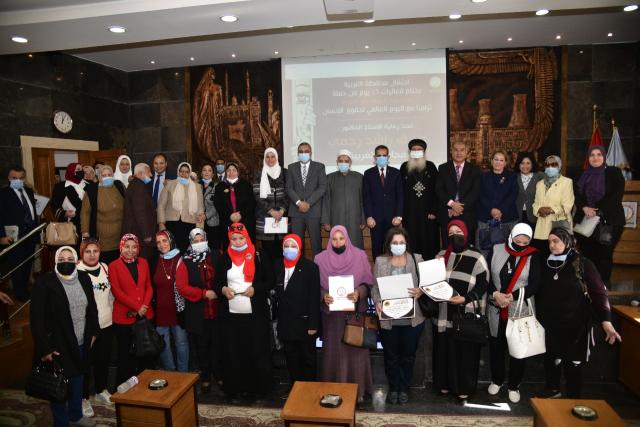 واختتم اللقاء بتكريم عدد من السيدات التي شاركن في فعاليات الحملة من المجلس القومي للمرأة والمديريات، وإهداء درع المحافظة إلى الدكتورة صفاء مرعي نظراً لجهودها المبذول خلال الحملة.