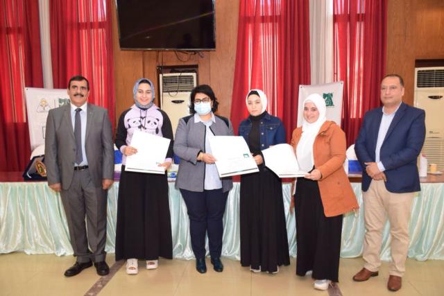 هانى الزيات مدير عام المدن ،ليلي هاشم مديرة المدينة ،بدور يحي أخصائية اسكان بالمدينة ،كما تم تكريم الطالبات المثاليات وهن :مريم عاطف علام،ندى سمير جبريل،دينا هنداوى، شاهندة احمد زكى.