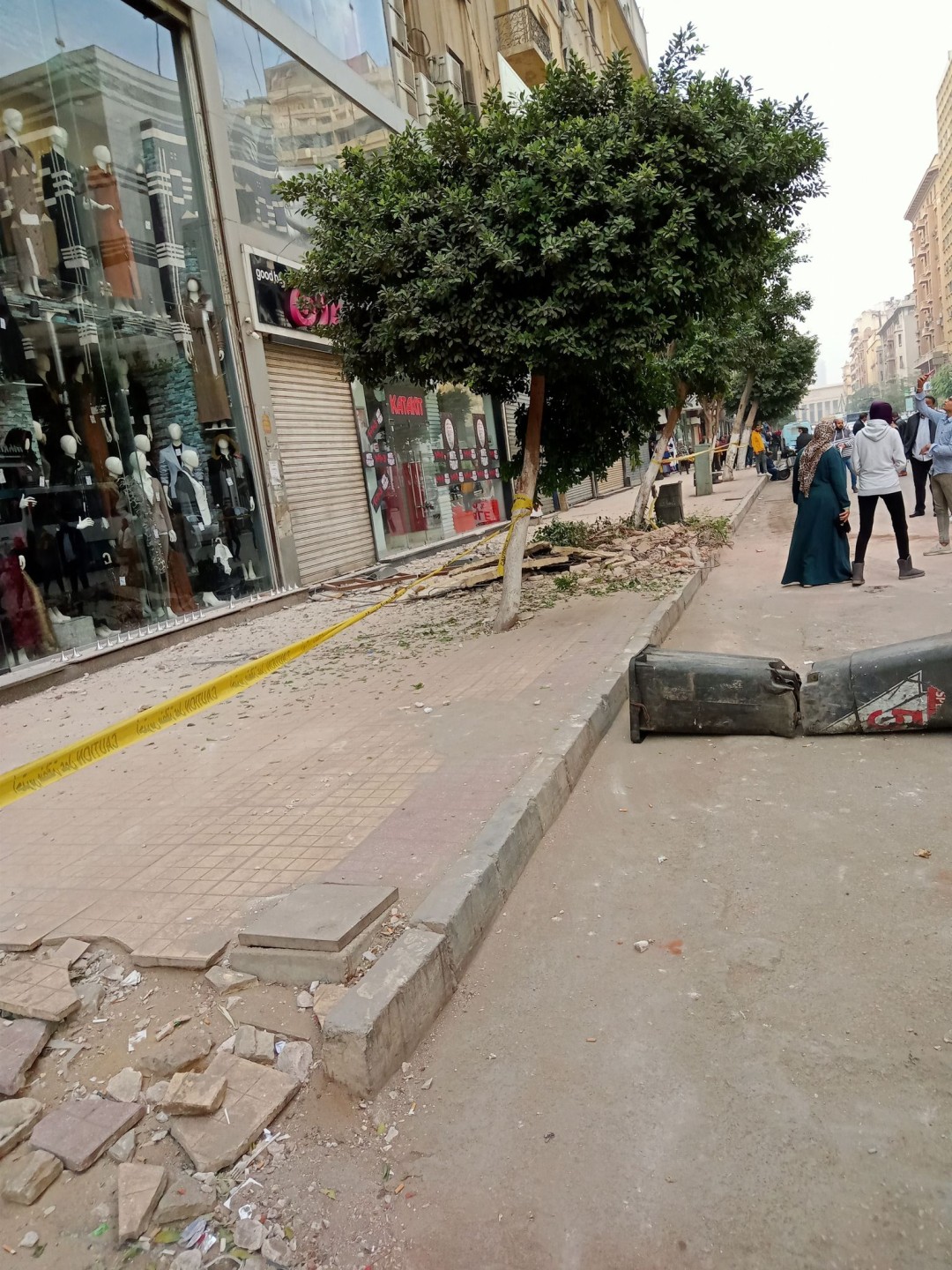 بالصور ..سقوط جزء من واجهة بيع المصنوعات بشارع ٢٦ يوليو