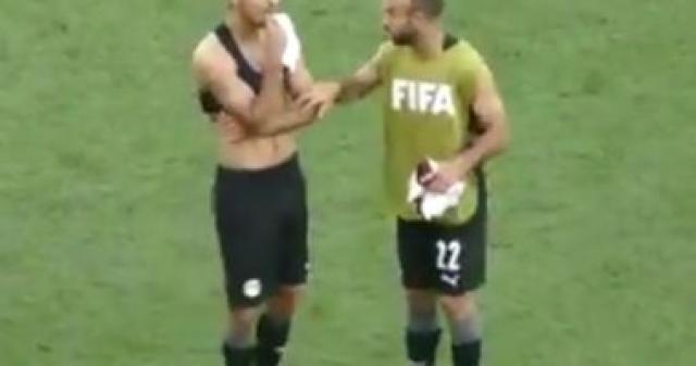 أفشة يحاول احتواء صدمة شريف بعد مباراة مصر وقطر.. واللاعب يغادر فى حزن