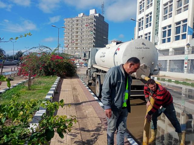 البحيرة: لليوم الثالث استمرار رفع تراكمات مياه الأمطار من الشوارع والميادين