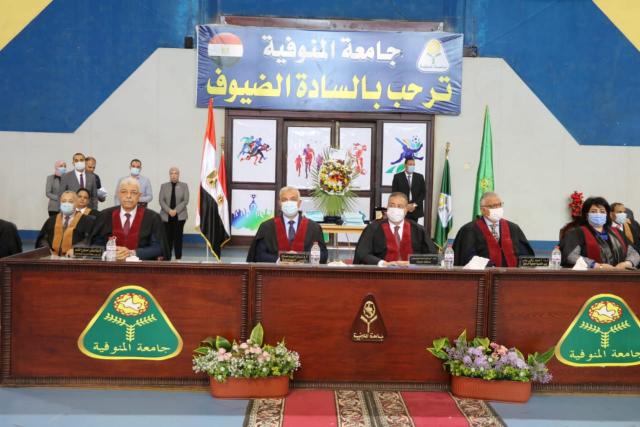 شهد الدكتور عادل مبارك رئيس جامعة المنوفية واللواء إبراهيم أبو ليمون محافظ المنوفية بدء احتفالات الجامعة بعيدها الخامس والأربعين بحضور رؤساء الجامعة السابقين ونائبا رئيس الجامعة الدكتور أحمد القاصد للدراسات العليا والبحوث والدكتور نانسى أسعد للتعليم والطلاب والمحاسب جلال عبد السلام أمين عام الجامعة وعمداء الكليات أعضاء مجلس الجامعة ولفيف كبير من ضيوف الجامعة من الشخصيات العامة والقيادات السياسية والأمنية وأعضاء مجلسى النواب والشيوخ وجمع كبير من أبناء الجامعة من أعضاء هيئة التدريس والعاملين والطلاب فى تجمع كبير بالصالة المغطاة باستاد الجامعة.