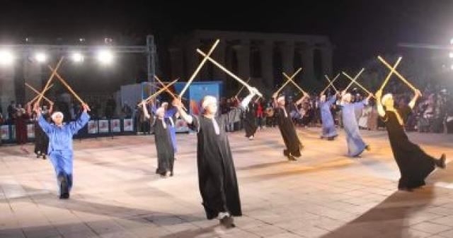 ختام فعاليات الدورة 11 للمهرجان القومى للتحطيب، الذى أقيم لأول مرة هذا العام بقرية القرنة غرب محافظة الأقصر، حيث تنفذ الهيئة العامة لقصور الثقافة برئاسة الفنان هشام عطوة برنامجا فنيا تشرف عليه الإدارة المركزية للشئون الفنية برئاسة الفنان أحمد الشافعي، وتشارك به 9 فرق فنية بعروضها فى 3 مواقع ثقافية تابعة للهيئة.