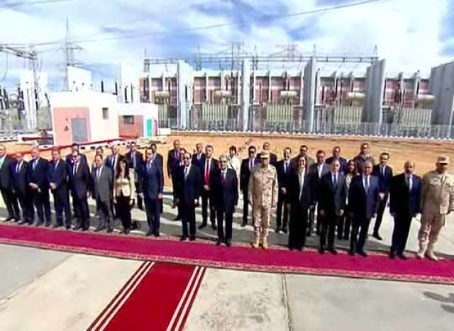 صورة تذكارية للرئيس السيسي مع مسئولي مشروع مجمع بنبان للطاقة الشمسية بأسوان