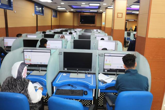 رئيس جامعة المنصورة يتفقد الاختبارات الالكترونية لطلاب كلية التجارة