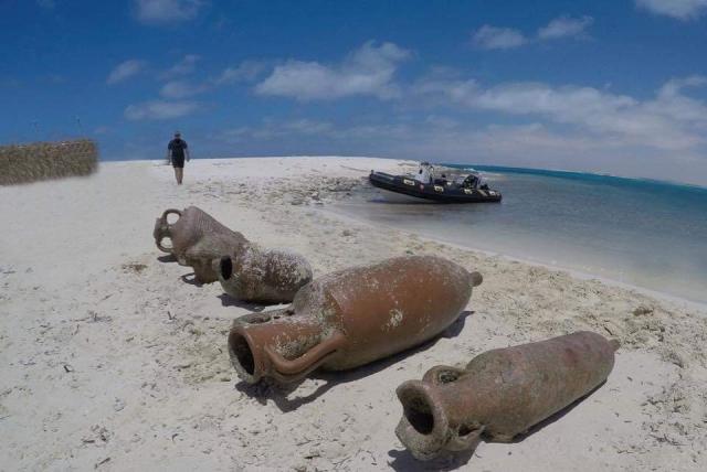 كما كشفت البعثة عن بقايا فخارية معظمها لأوانٍ فخارية على طراز الأمفورات تعود إلى العصر الروماني المتأخر.