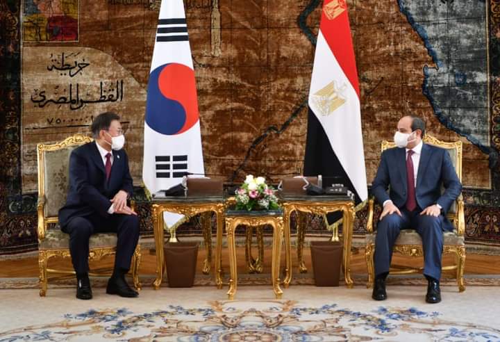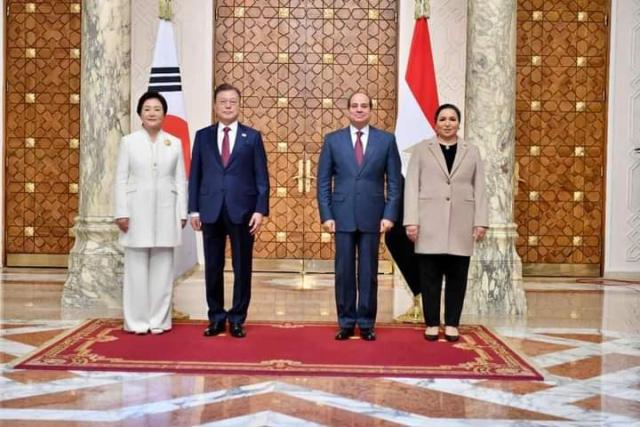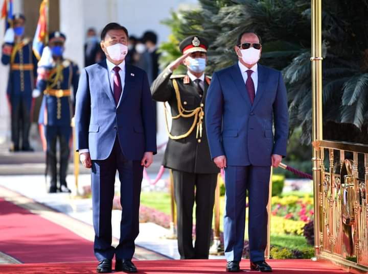 وصرح المتحدث الرسمي باسم رئاسة الجمهورية بأن الرئيسين عقدا جلسة مباحثات ثنائية، أعقبها جلسة موسعة ضمت وفدي البلدين، حيث رحب السيد الرئيس بنظيره الكوري الجنوبي، وذلك في أول زيارة لرئيس كوري جنوبي إلى مصر منذ حوالي 16 عاماً، مشيداً سيادته بعمق العلاقات بين البلدين الصديقين، وبالزخم الملحوظ الذي تشهده خلال الفترة الماضية، ومؤكداً أهمية العمل على تفعيل الشراكة التعاونية الشاملة بين الجانبين، بما يتناسب مع إمكانات ومقدرات مصر وكوريا الجنوبية، ويساعد مصر على الاستفادة من التجربة التنموية الفريدة لكوريا الجنوبية.